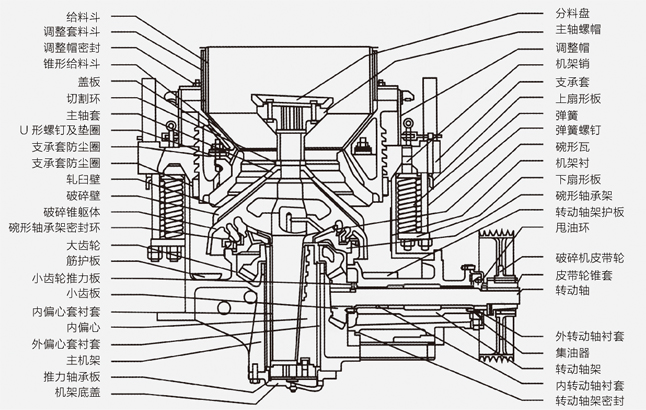 圓錐破碎機(jī)適用于冶金、建筑、筑路、化學(xué)及硅酸鹽行業(yè)中原料的破碎,根據(jù)破碎的原理,圓錐破碎機(jī)廣泛運(yùn)用于大的礦山、冶煉、建材、公路、鐵路、水利工業(yè)等眾多部門。圓錐破碎機(jī)破碎比大、效率高、能耗低,產(chǎn)品粒度均勻,適合中碎和細(xì)碎各種礦石,巖石。