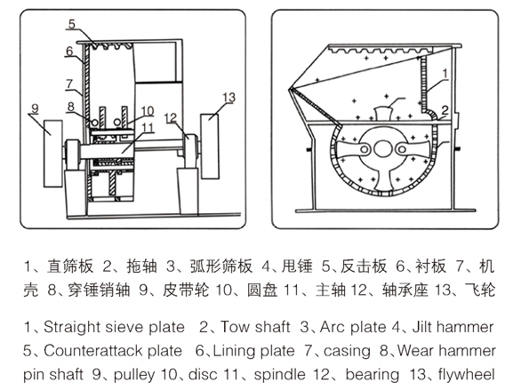4.易損件的磨損比錘式破碎機小、金屬利用率高。